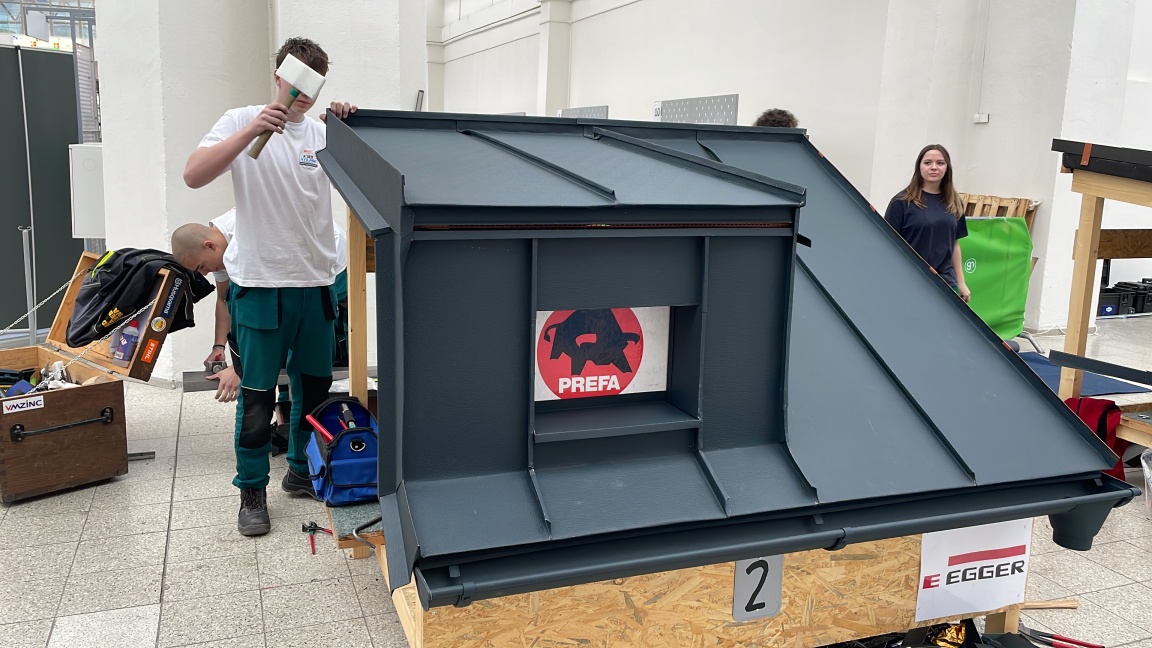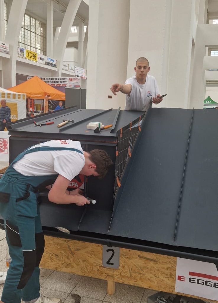 Klempíře za naši školu reprezentovali Filip Šimek a Denis Němec (1. ročník). Soutěžní úkol zahrnoval montáž půlkulatého hliníkového okapního systému a instalaci hliníkové plechové krytiny na dvojitou stojatou a úhlovou drážku. V konkurenci nejlepších škol z celé republiky si naši žáci vedli výborně a obsadili 2. místo. Zvláště proto, že oba naši žáci jsou z prvního ročníku, je to opravdu velký úspěch! Soutěž byla pořádána ve spolupráci s Cechem klempířů, pokrývačů a tesařů a hlavním sponzorem byla firma Prefa Aluminiumprodukte.