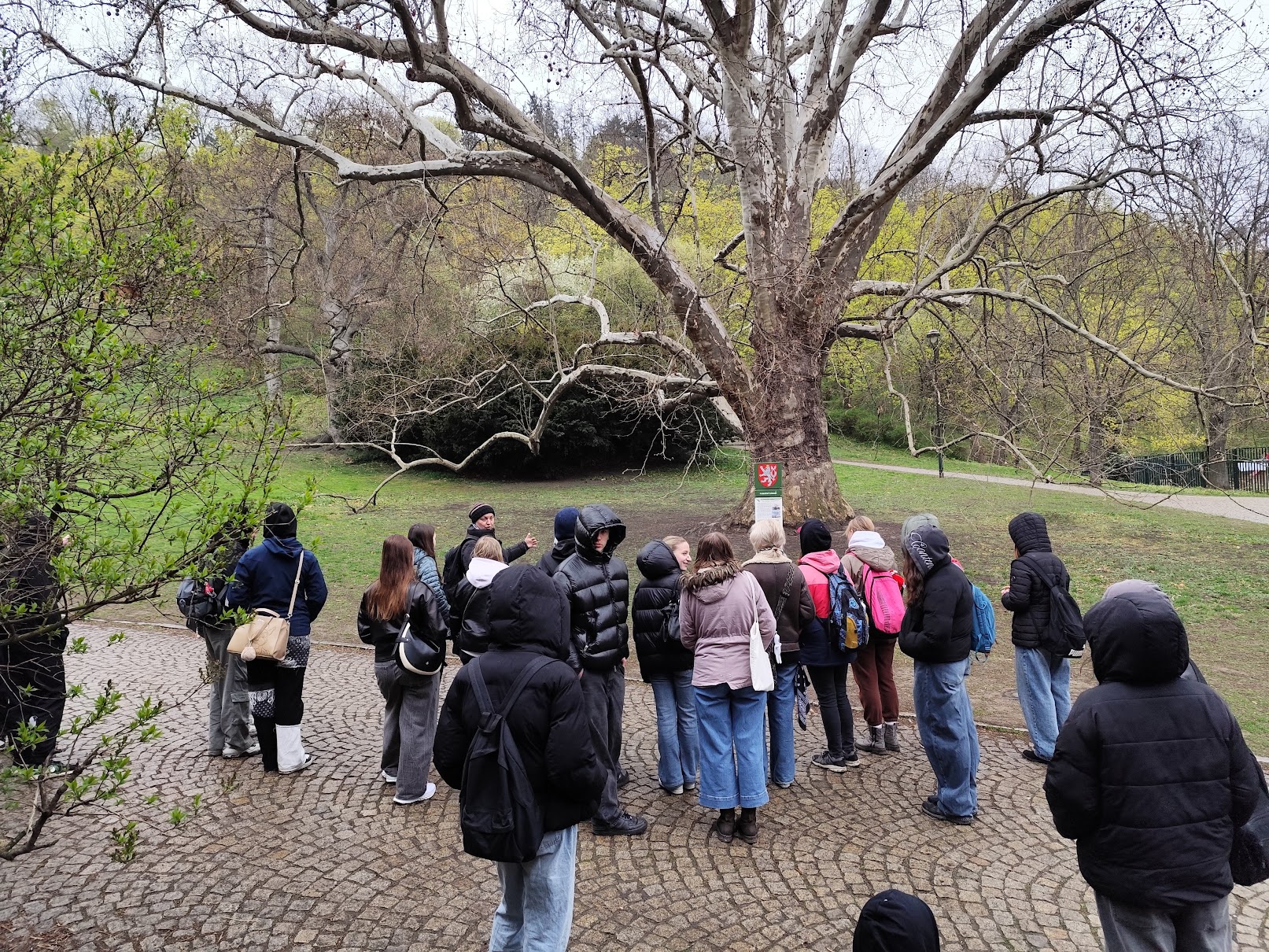 V pátek 10. dubna jsme se se žáky prvního ročníku učňovského oboru Zahradník vydali na komentovanou vycházku za památnými a významnými stromy na pražské Malé Straně. Naší průvodkyní byla Ing. Rianna Cestrová z ekocentra Koniklec. Na trase od Pohořelce až k Arbesovu náměstí jsme potkali celkem sedm památných nebo významných stromů, u nichž jsme se vždy zastavili a poslechli si zajímavosti o daném stromu a o zajímavých událostech, které se k němu vážou. Povídání bylo prodchnuté nejen úctou ke starým majestátným stromům a znalostmi o nich a o přírodě, ale také společenským a historickým kontextem, který se váže nejen k samotným stromům, ale i k celému místu, kde jsme se pohybovali. Žáci tak například viděli Nerudovu hrušeň či lípu Jana Nerudy, prastarý javor babyka a dvě lípy republiky, také se dozvěděli, jak se sami mohou zasadit o to, aby se strom mohl stát památným. Během procházky žáci také plnili několik úkolů, při nichž si procvičili logické myšlení, znalosti základních stromů naší přírody, a na konci vycházky i to, jak během ní dávali pozor při výkladu. Počasí nám příliš nepřálo, žáci si tak zaslouží speciální uznání za to, že i přes chlad a sněžení zvládli celý program až do konce. Děkujeme Rianně Cestrové za poutavý, poučný a interaktivní program vycházky a budeme se těšit na další příležitost vyrazit společně s našimi žáky za pražskými památnými stromy.